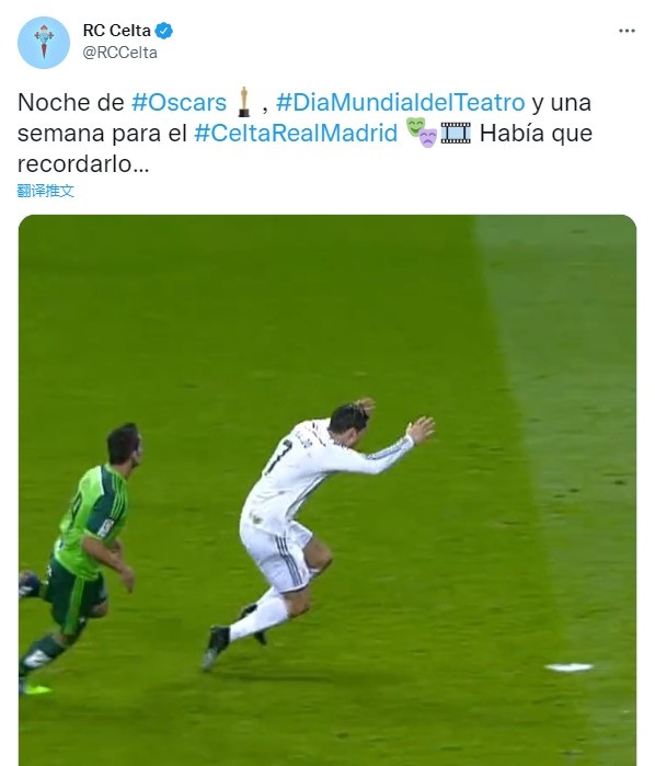 蹭奥斯卡热度,塞尔塔晒C罗禁区摔倒争议瞬间:这一幕必须被铭记